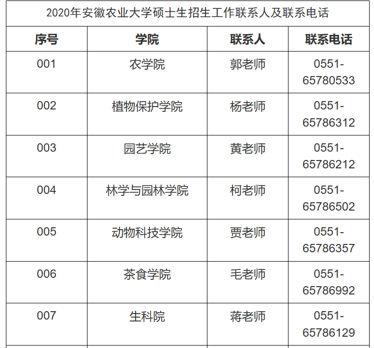 现发布安徽农业大学2020年硕士生招生待录取名单(截至5月31日),如有问题,请及时与报考学院联系,各学院联系方式详见下表。最终录取结果以安徽省教育招生考试院的审批为准。