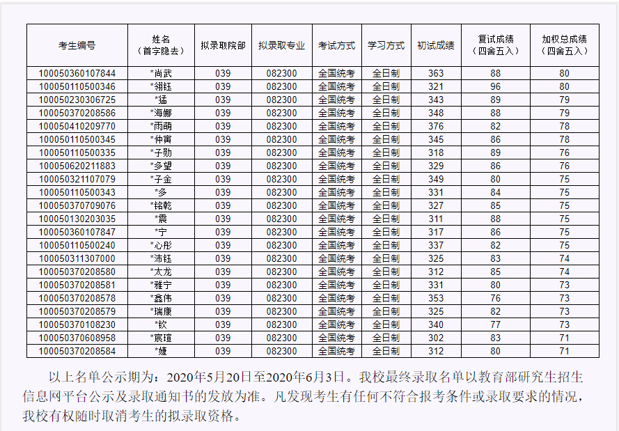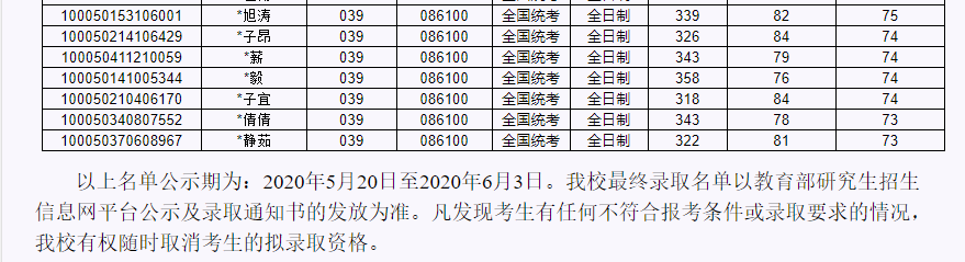 以上就是小编整理的“2020考研拟录取名单:2020年北京工业大学城市交通学院硕士研究生拟录取名单”的全部内容,更多关于2020考研录取名单,2020北京工业大学录取名单的信息,尽在“考研拟录取名单”栏目,定会对大家有所帮助!