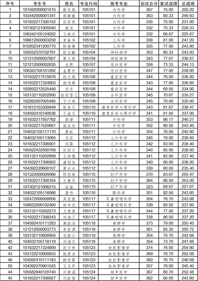 以上就是小编整理的“2022考研拟录取名单:长春中医药大学2022年硕士研究生招生考试临床医学院部分学科第一次调剂考生拟录取(一)”的全部内容,更多关于2022考研拟录取名单,长春中医药大学2022考研拟录取名单,佛山科学技术学拟录取名单,考研拟录取名单的信息,尽在“考研拟录取名单”栏目,希望对广大学子有所帮助!