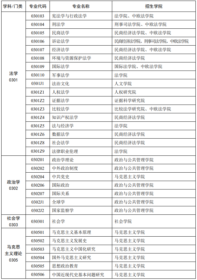 以上就是小编整理的“2022招生专业目录:中国政法大学2022考研招生专业目录(学术学位)”的全部内容,更多关于中国政法大学2022考研招生专业目录的信息,尽在“招生目录”栏目,希望对广大学子有所帮助!