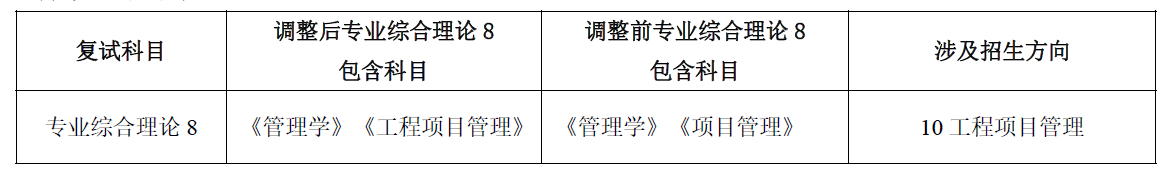 对招生方向“10工程项目管理”复试科目“专业综合理论8”作如下调整: