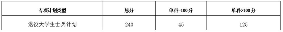 三、“退役大学生士兵”专项计划复试基本分数线