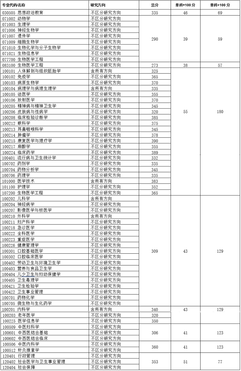一、学术学位各专业复试基本分数线