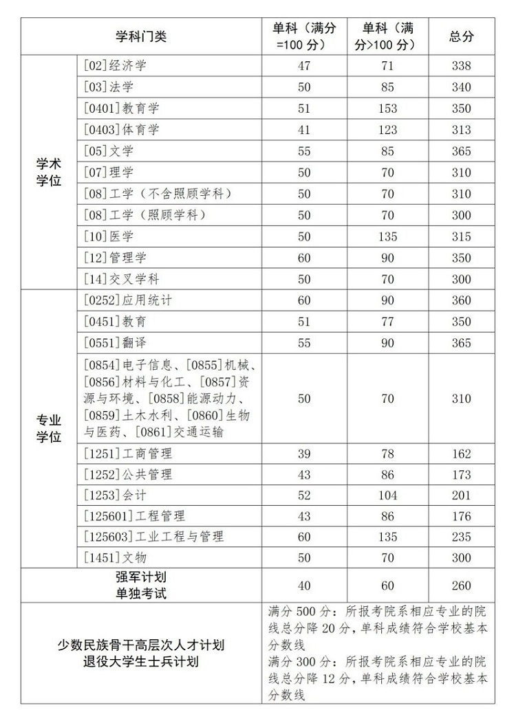 1.学校复试基本分数线是我校的最低复试分数要求,各招生学院可根据生源的实际情况,在学校复试基本分数线的基础上制定本学院的复试分数线。