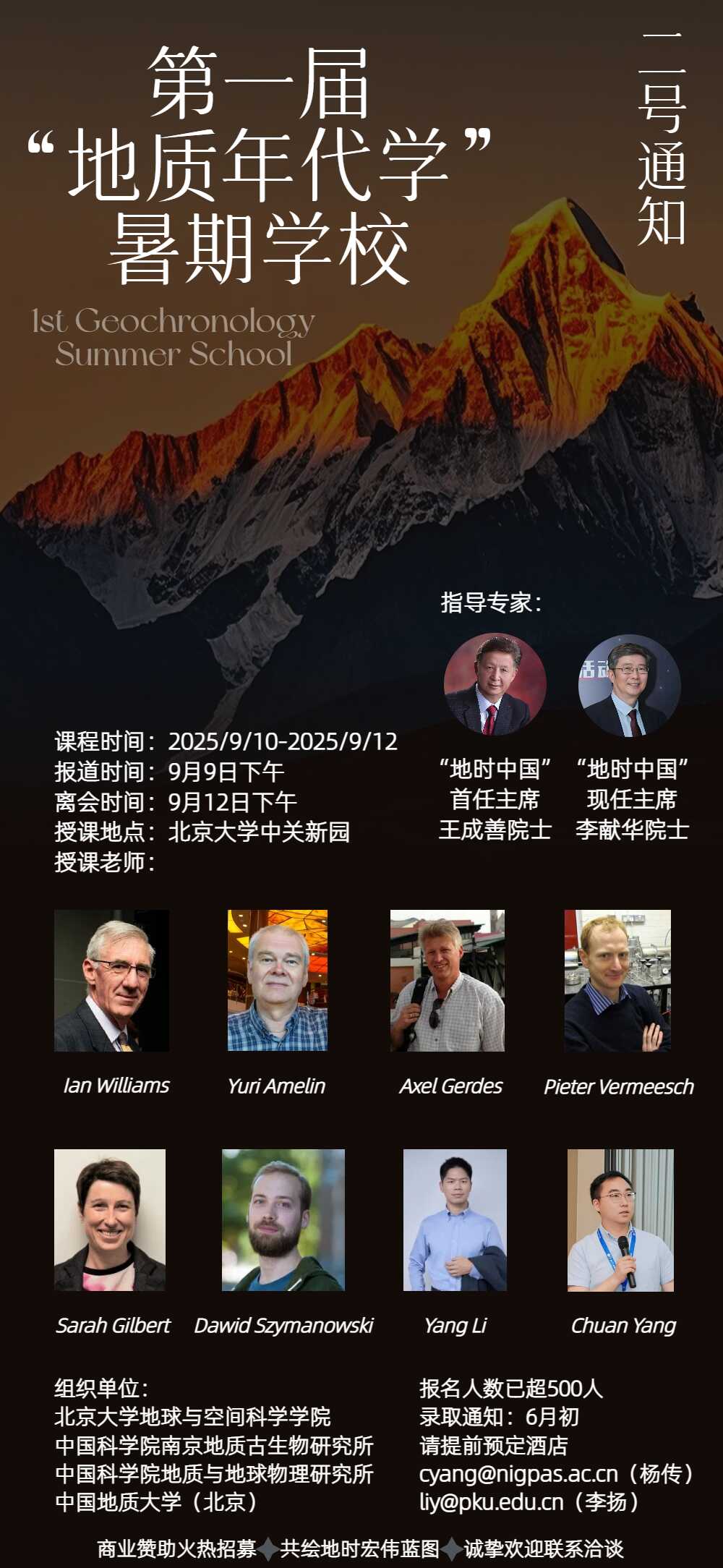 为促进地质年代学领域的学术交流,推动其与相关学科的交叉融合,并助力该领域在我国的持续发展,在“地时中国”首任和现任主席王成善院士和李献华院士等专家学者的倡议下,第一届“地质年代学”暑期学校将于2025年9月10日至12日在北京举办。