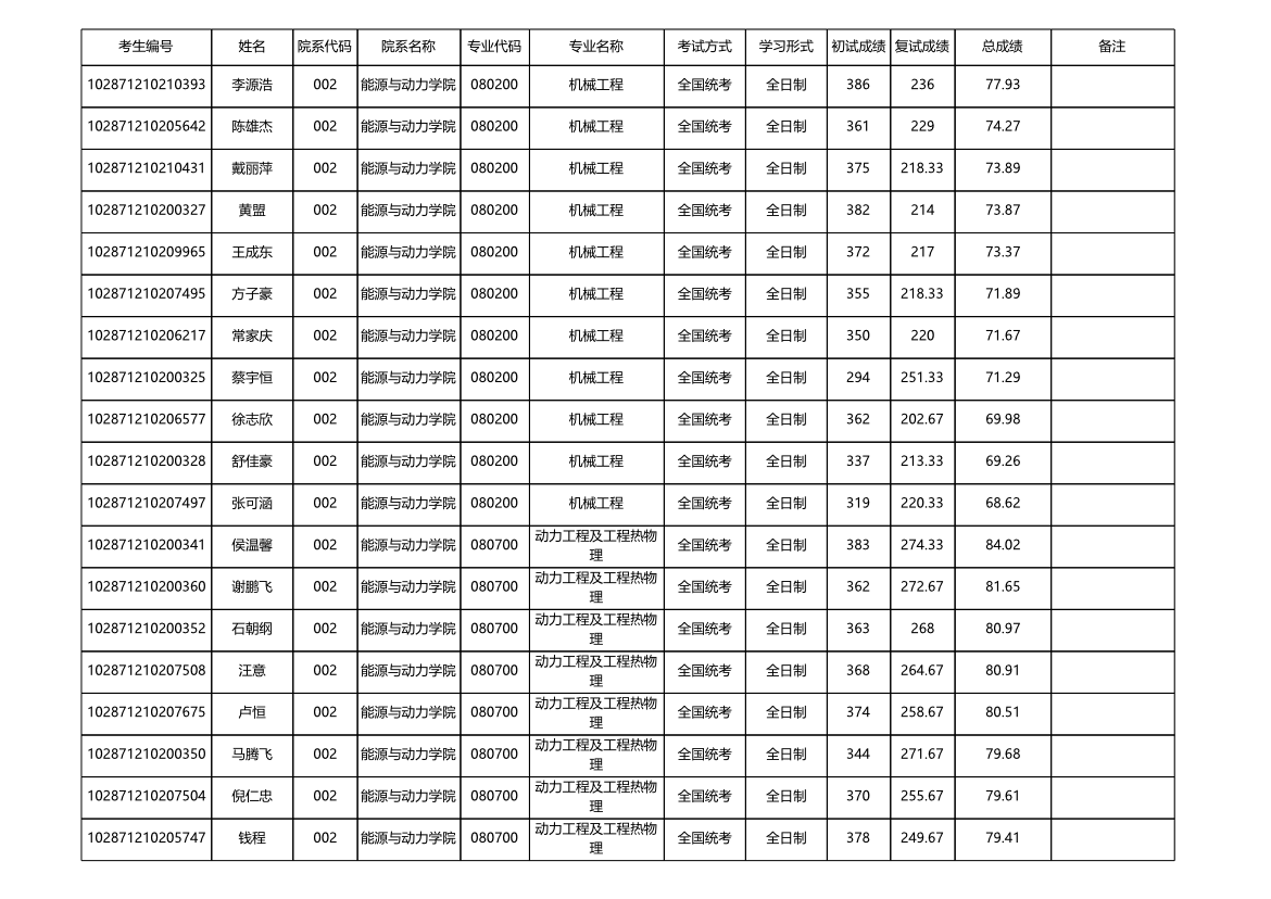 附件:能源与动力学院2021年硕士研究生拟录取名单(不含推荐免试生)