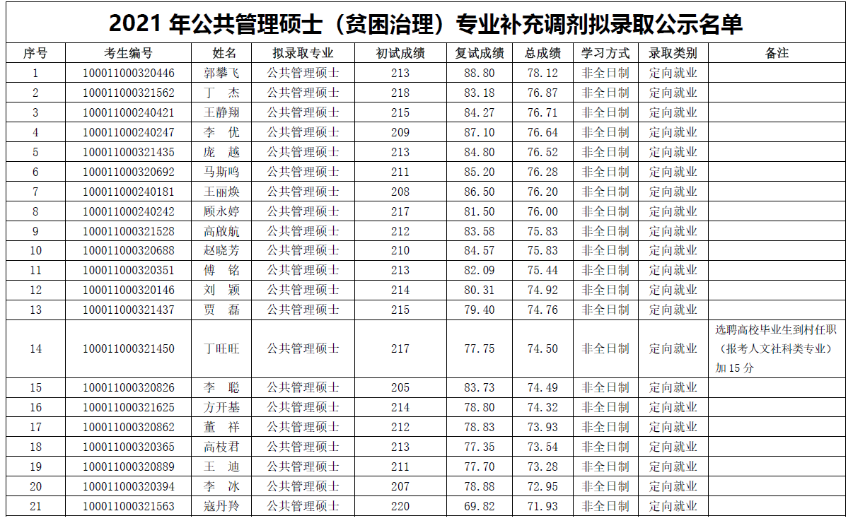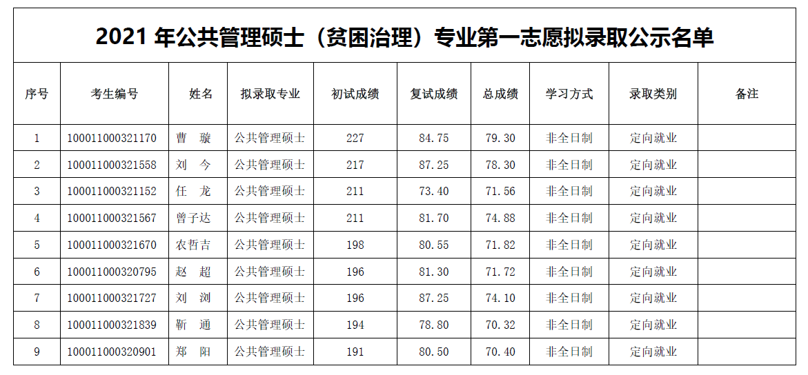 以上就是小编整理的“2021研究生拟录取名单:北京大学政府管理学院2021年公共管理硕士(贫困治理)专业拟录取名单”的全部内容,更多关于2021考研拟录取名单,北京大学拟录取名单,考研拟录取名单的信息,尽在“考研拟录取名单”栏目,定会对大家有所帮助!
