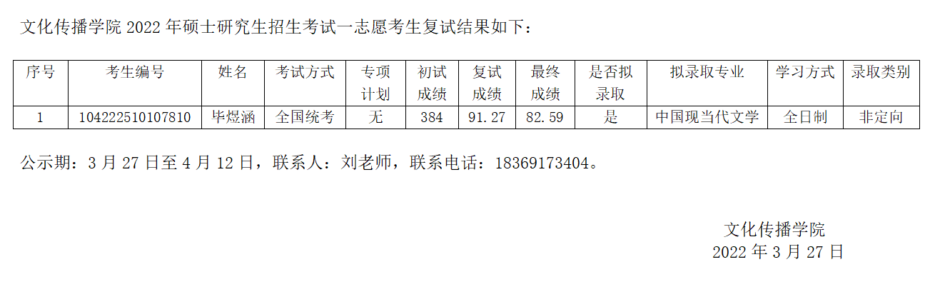 以上就是小编整理的“2022考研拟录取名单:山东大学文化传播学院2022年硕士研究生招生考试一志愿考生复试结果”的全部内容,更多关于2022考研拟录取名单,山东大学拟录取名单,考研拟录取名单的信息,尽在“考研拟录取名单”栏目,希望对大家有所帮助!