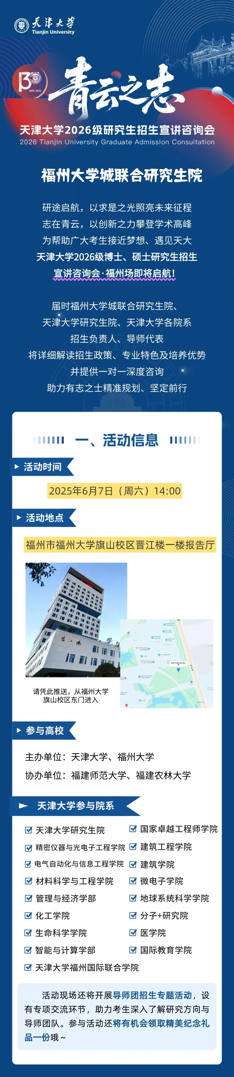 “蜀”韵收官 “福”地启新篇|天津大学2026级研究生招生宣讲咨询会成都场圆满落幕,福州场即将启程~文章来源:https://mp.weixin.qq.com/s/Bb47EdiVrOt2Hd7gL0qPZQ