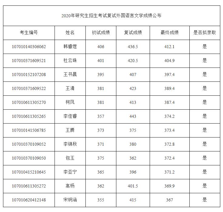 以上就是小编整理的“2020考研拟录取名单:西安电子科技大学2020年外国语言文学研究生拟录取名单”的全部内容,更多关于西安电子科技大学拟录取名单,2020拟录取名单,考研拟录取名单的信息,尽在“考研拟录取名单”栏目,希望对大家有所帮助!