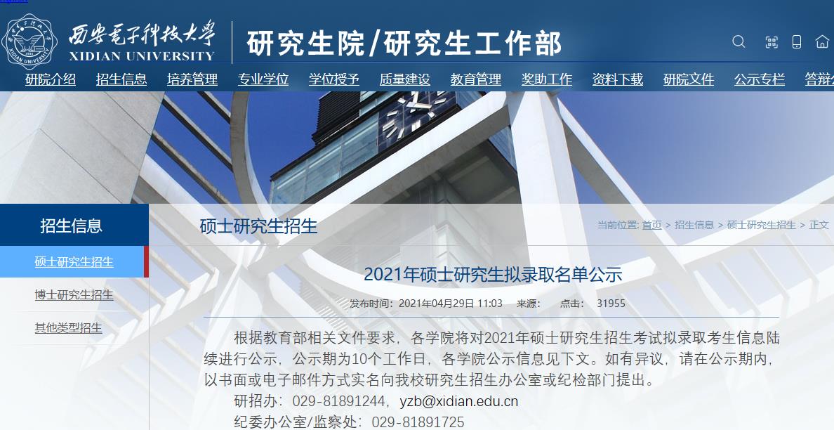 2021西安电子科技大学硕士研究生拟录取名单汇总 | |||